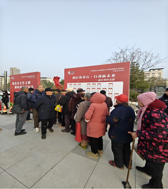活動聚焦“普及誠信知識、強(qiáng)化誠信意識、踐行誠信理念”目標(biāo),創(chuàng)新采用線下“隨機(jī)抽題+現(xiàn)場作答+即時講解”的形式增強(qiáng)體驗感。精心設(shè)置單選題、情景判斷題等題型,內(nèi)容涵蓋誠信相關(guān)法律法規(guī)、社會信用體系建設(shè)政策、經(jīng)典誠信故事、日常誠信行為規(guī)范等多個方面?,F(xiàn)場群眾通過抽號答題、互動競猜的方式,在輕松氛圍中學(xué)習(xí)誠信知識。工作人員對題目中涉及的法律法規(guī)和信用知識進(jìn)行現(xiàn)場解讀,實現(xiàn)知識普及與實踐指導(dǎo)有機(jī)結(jié)合?;顒痈鶕?jù)題目難易程度,對回答正確的老百姓發(fā)放抽紙、洗衣液、香皂等日常生活用品500余份。活動現(xiàn)場還配套發(fā)放《誠信建設(shè)宣傳手冊》等資料500余份,幫助群眾進(jìn)一步理解“守信激勵、失信懲戒”的社會信用規(guī)則。